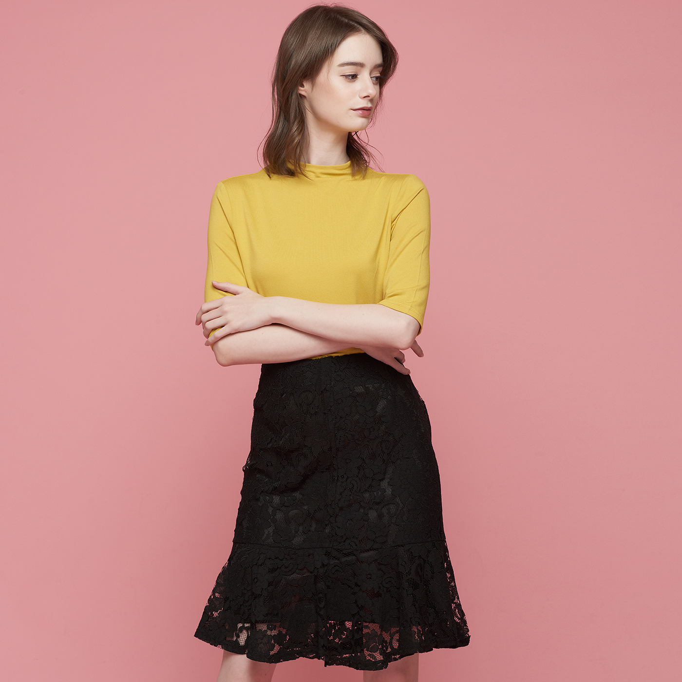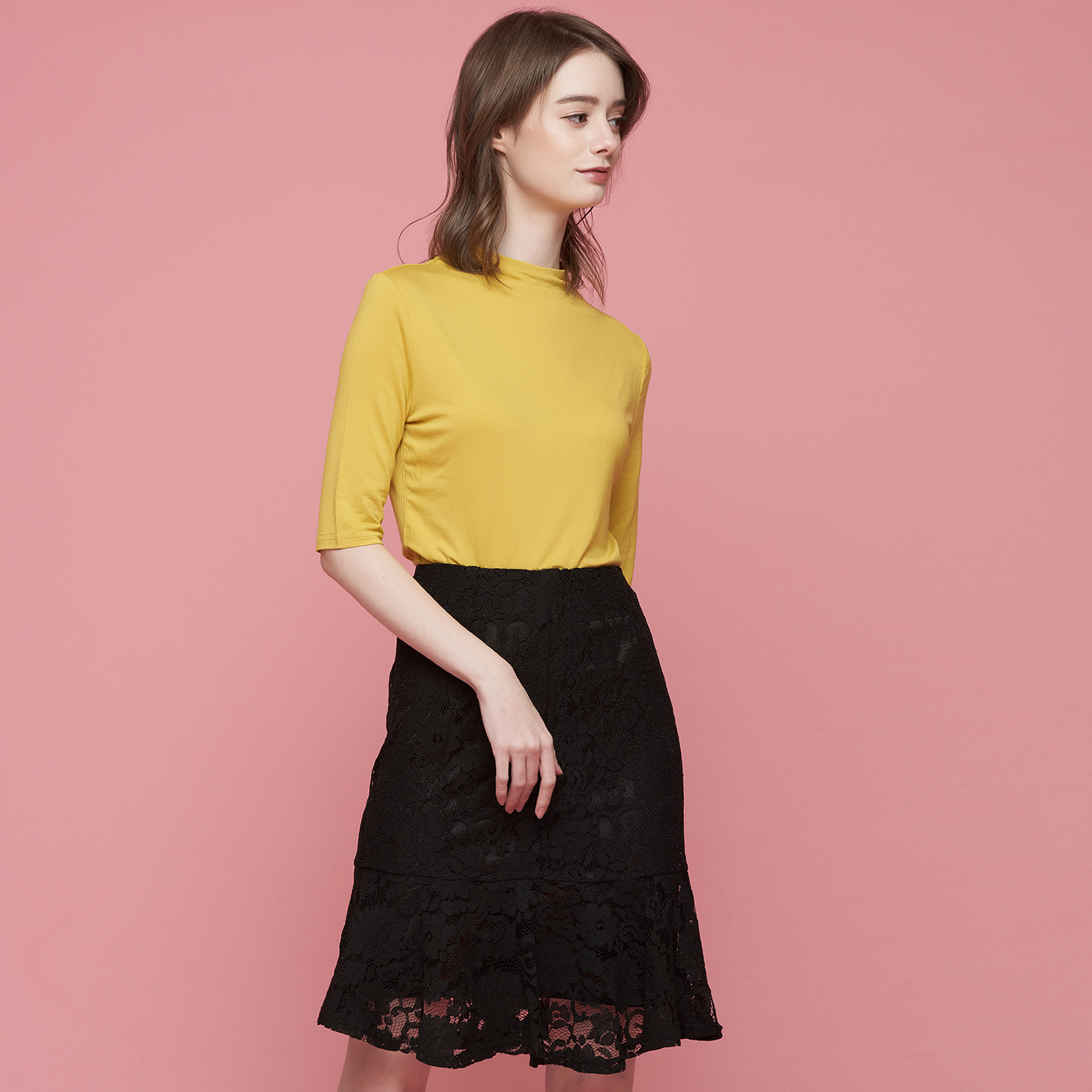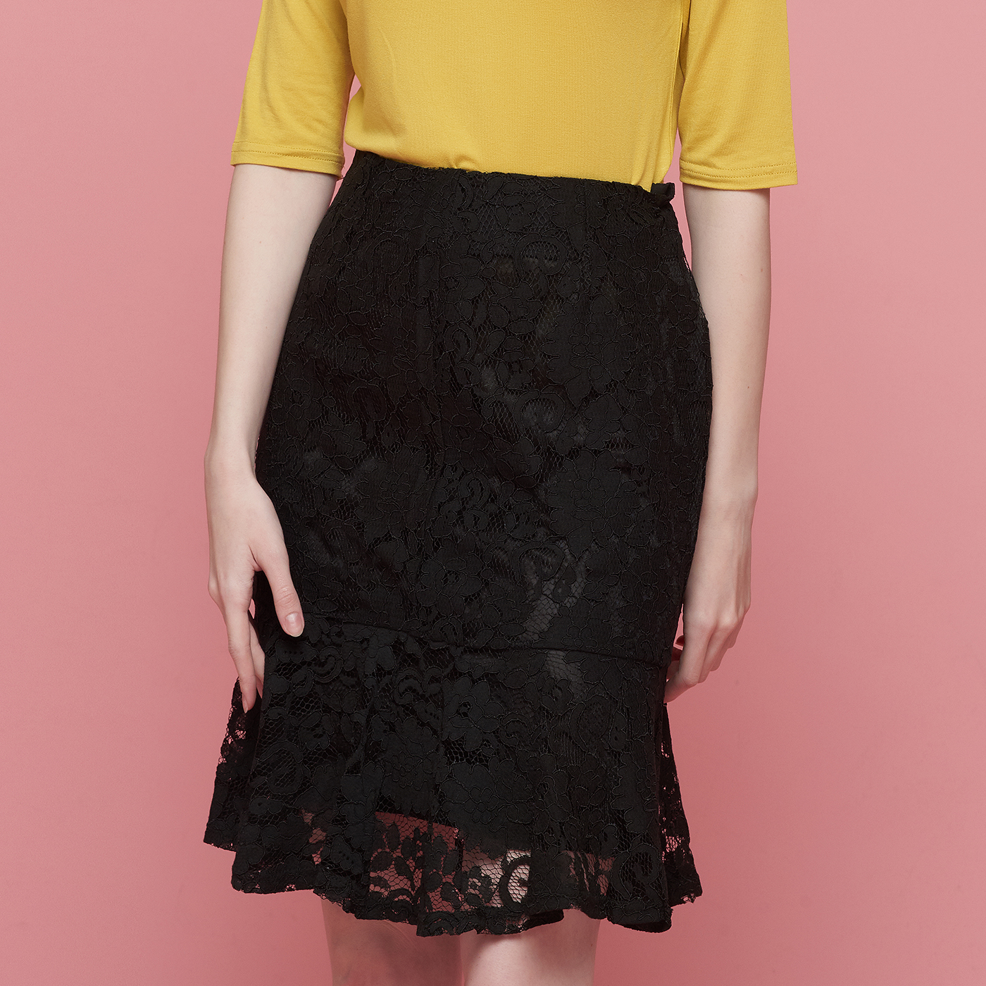 아름다운 플라워 레이스의 블랙 스커트입니다.