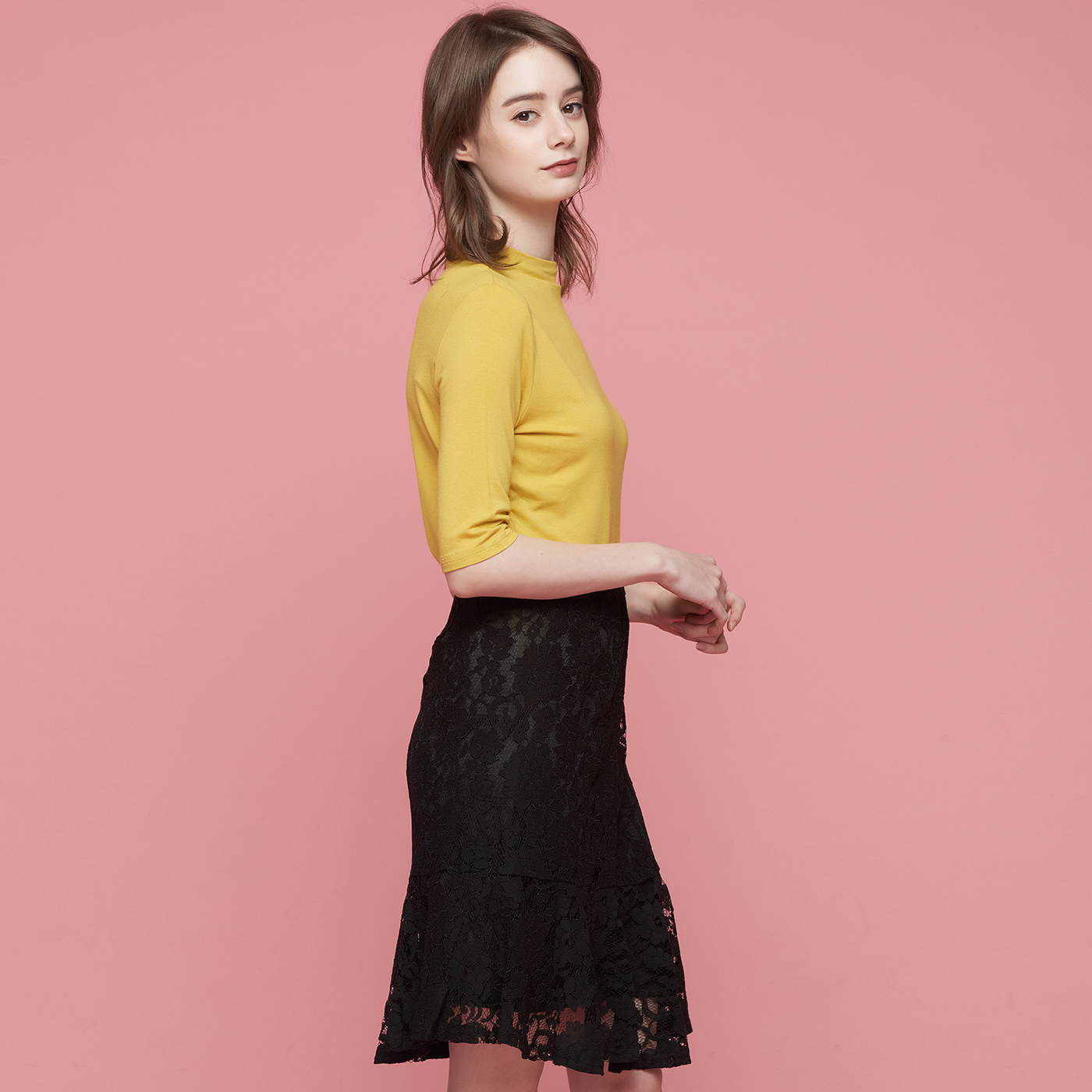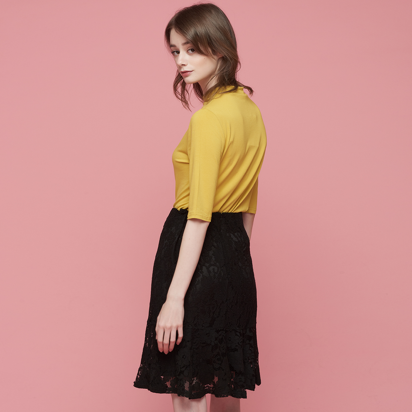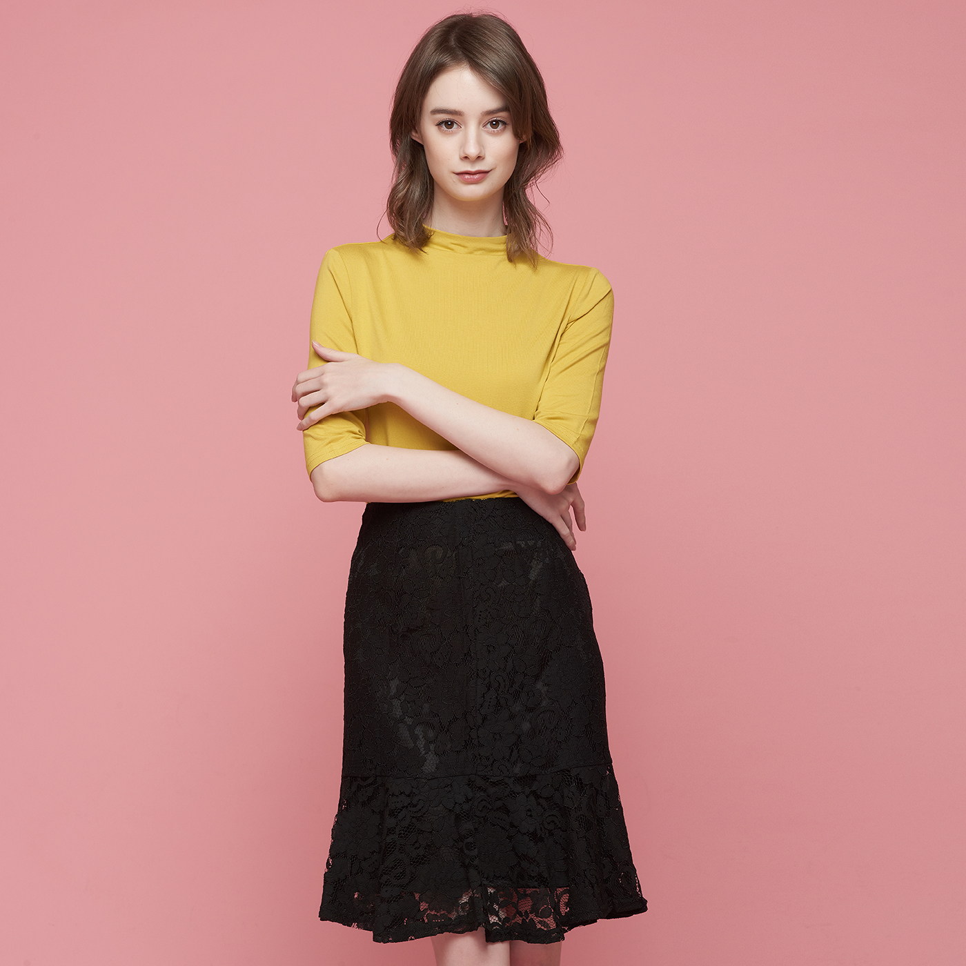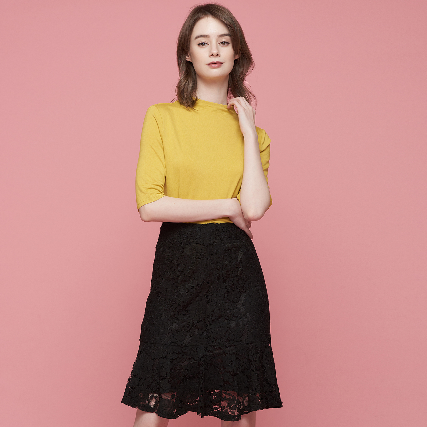 아름다운 플라워 레이스의 블랙 스커트입니다.