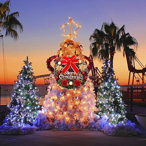 - 🎄Christmas Wreath Ring Diameter: 30CM / 11.8Inch. You can hang the Christmas wreath any place you like, which will adds a more festive atmosphere for your Christmas. Shimmering star topper for your christmas tree.