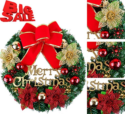 - 🎄Place wreath on your front door, Party,over your fireplace or anywhere in your home.Attractive color, can give you a wonderful visual enjoyment. This classic winter holiday wreath have got the fashionable trends for so many years. Adding more Christmas atmosphere in you house.