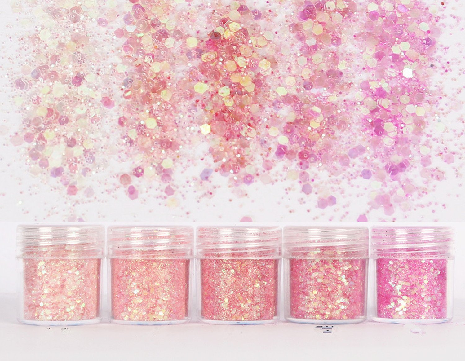 色:ピンク 5個セット 容量:10ML/ボックス 中は細かいパウダーと1mmのグリッターです。 品質のいい素材から作られます。環境や肌に優しい。 ネイルパーツとして、フレンチやグラデーション、ラインなど、様々なネイルに大活躍します。 ネイルだけではなく、レジン、デコ、メイク、ボディ、ヘア飾りなど様々な使い方ができると思います。 パッケージ:5個5色セット