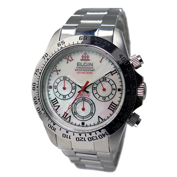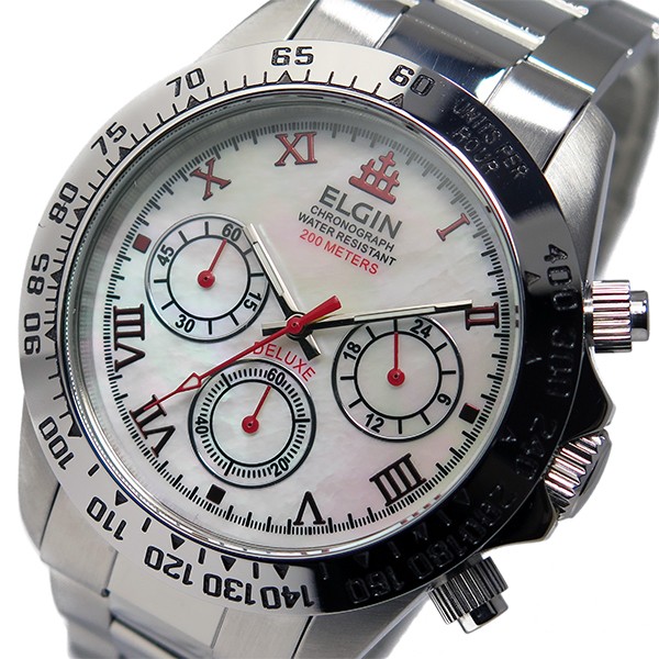 エルジン ELGIN クロノ クオーツ メンズ 腕時計 FK1406S-W ホワイトシェル