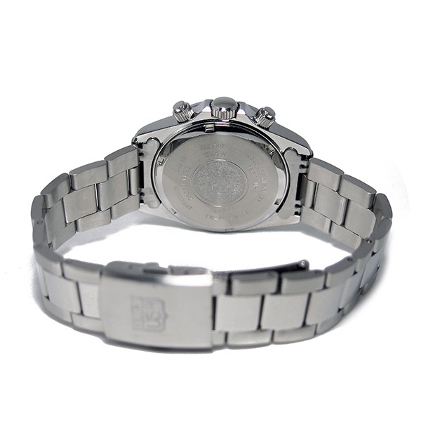 クロノグラフ、24時間計表示、200M防水、プッシュ式止め金、強化クリスタルガラス、ねじ込み式リューズ、カラー:ホワイトシェル(文字盤)、シルバー(ベルト)
