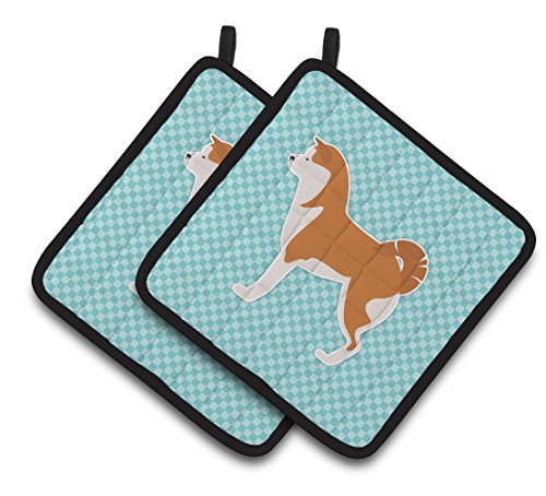 Caroline's Treasures Akita Checkerboard Blue Pair of Pot Holders BB3772PTHD, 7.5HX7.5W, Multicolor