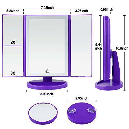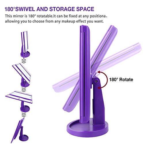 - 180°Degree Free Rotation: ESARORA lighted makeup mirror stands on your countertop can be freely adjusted and fixed a perfect and comfortable viewing angle. Tri-fold and detachable design makes you can take it anywhere you go.