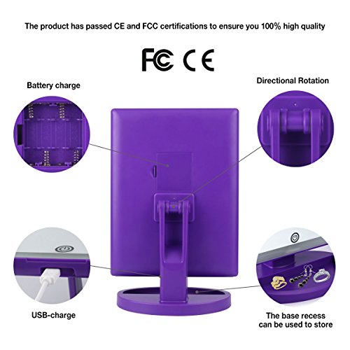 - Dual Power Source: ESARORA vanity mirror is powered by 4 pcs of AAA batteries(not included) or through a USB charger. The package includes a cleaning cloth. The base recess can hold Jewellery and cosmetics, such as necklaces, earrings, bracelets.