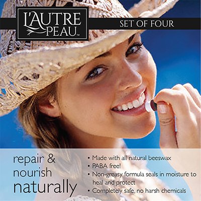4 PIECE GIFT SET: The Simplicity Set by L'AUTRE PEAU | Special 4 pack set - Asian Pear, Acai Berry, Honey & Pomegranate Flavors. The smooth texture of our lip balms give you the luxurious spa feel that only comes with high quality skincare. Makes a great gift idea.