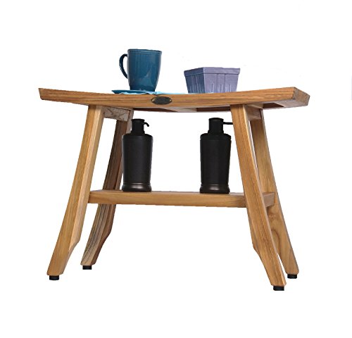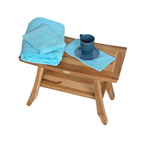 24" EcoDecors EarthyTeak™ Satori Teak Shower Bench with Shelf