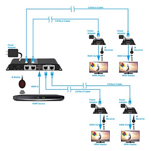 ✔ IR REMOTE CONTROL – Allows source device to recognize remote commands; You can control the HDMI source device at a secondary location with the included IR cables that forward commands over a CAT5e/6/7 cable for your convenience