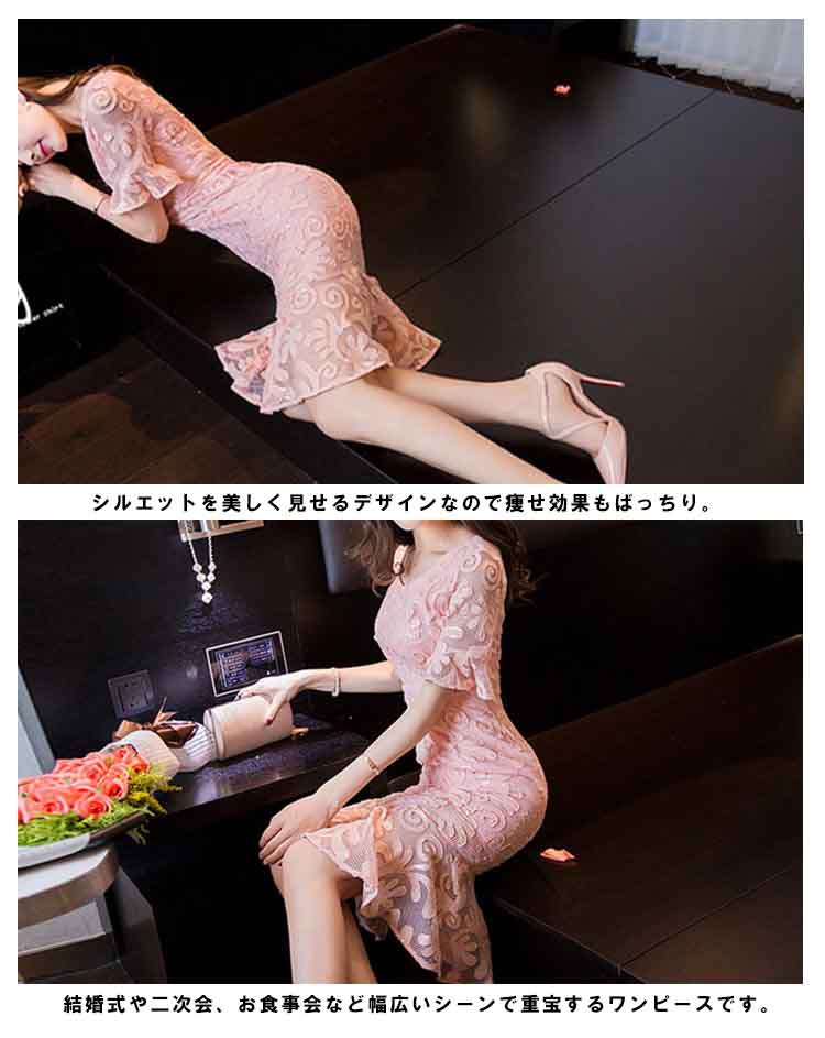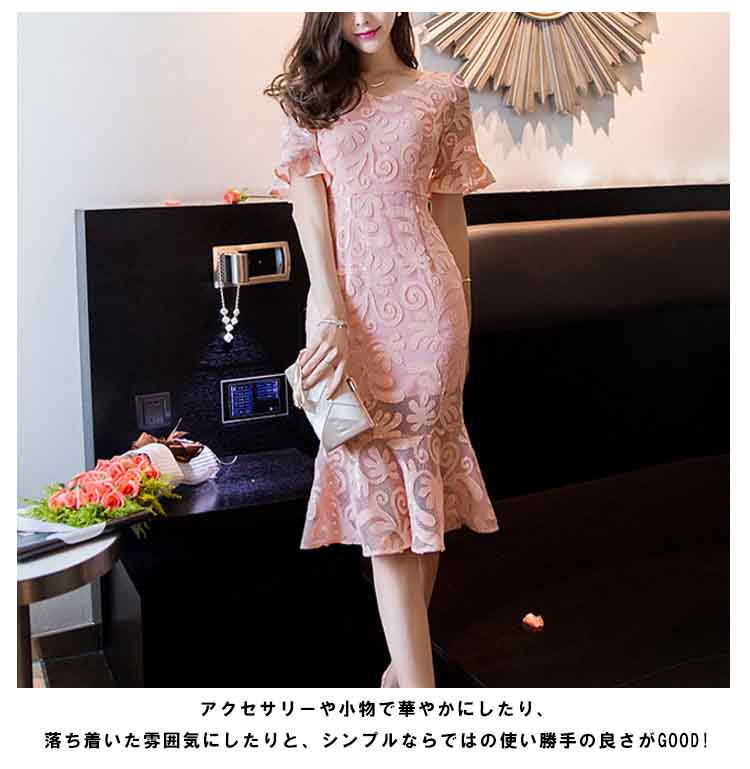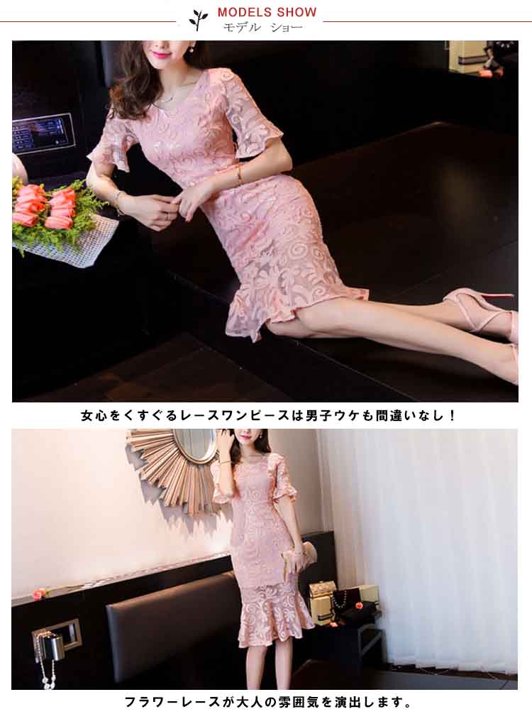 | 美しいマーメイドシルエットがメリハリボディをメイク!女心をくすぐるレースワンピースは男子ウケも間違いなし!フラワーレースが大人の雰囲気を演出します。シルエットを美しく見せるデザインなので痩せ効果もばっちり。 結婚式や二次会、お食事会など幅広いシーンで重宝するワンピースです。アクセサリーや小物で華やかにしたり、落ち着いた雰囲気にしたりと、シンプルならではの使い勝手の良さがGOOD! | |