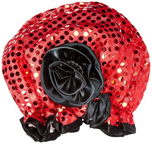 Kella Milla Stylish Satin Shower Cap, Red Glitter/Black Rose