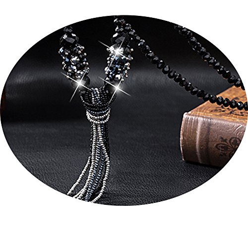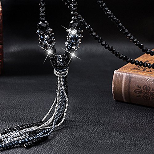 Fashion Dress Sweater Necklace Rhinestone Charm Pendant Long Black Chain Women Clothing Accessories Jewelry