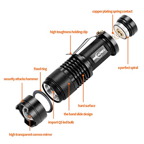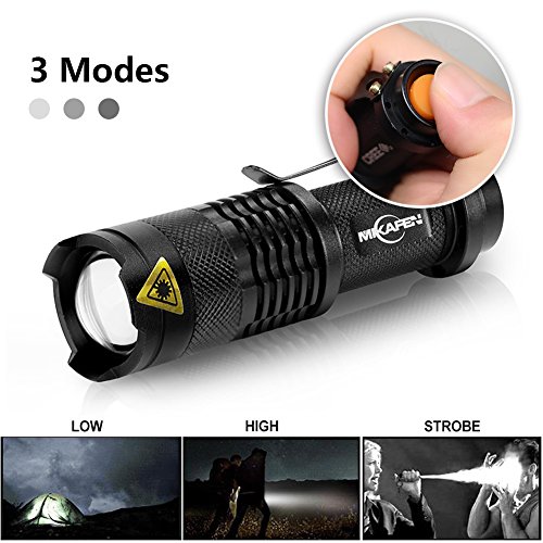 Studio : Mikafen Publisher : Mikafen Binding : Misc. Product Description Features: Super mini size, bright, blinding effect. Clip for convenience carry. Specifications: Colour: Black, Blue, Red, Green, Lumens: 1200LM Reflector: Convex Lens Material: Aluminum alloy Model of LED: CREE Q5 LED Switch: Tail-cap press ON/OFF Battery:1x14500 /1 X AA Battery (not included) Package Included: 10 x Q5 Flashlight