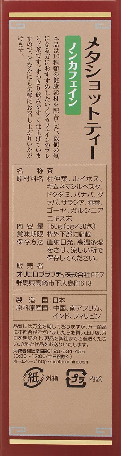 原産国 : 杜仲葉:ドクダミ:グァバ:桑葉:ゴーヤ→中国、ルイボス→南アフリカ、ギムネマシルベスタ:サラシア:ガルシニアエキス末→インド、バナバ→フィリピン]