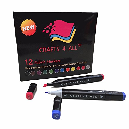 Fabric Markers Pens Permanent 12 Pack Dual Tip MINIMAL BLEED Rich Paint Color Pigment Fine Graffiti Fabric Pens by Crafts 4 All. Child Safe & Non Toxic