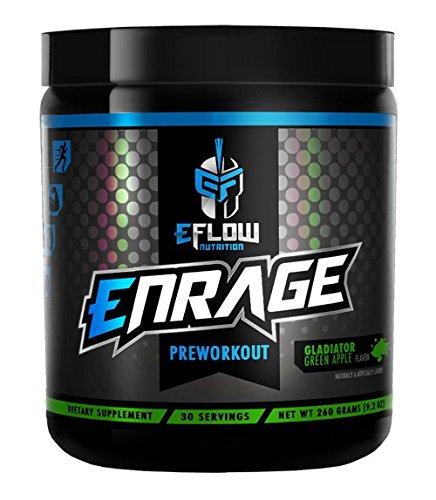 Studio : EFlow Nutrition Publisher : EFlow Nutrition Binding : Health and Beauty Product Description No Crash and No Jitters. Strength. Endurance. Focus. Pump. Motivation. Intensity. Performance. Mixes Instantly and tastes great! Zero Calorie Sugar Free Flavor: Green Apple Manufactured in the USA and Produced in a GMP Registered Facility. What does ENRAGE do? Ready to take your workouts and physique to the next level? Becoming an eFlow Warrior is a long journey and will take countless hours of hard work. ENRAGE will fuel your body with the ideal preworkout ingredients it needs to perform at optimal levels throughout your workout. This amazing product, increases strength and endurance, enhances mental focus, clarity and mood, enabling you to stay motivated and powerful throughout your entire workout. Users should start to feel the effects of ENRAGE within 10-30 minutes, bringing more intense workouts, increased strength, enhanced mental awareness and unbelievable muscle pumps.