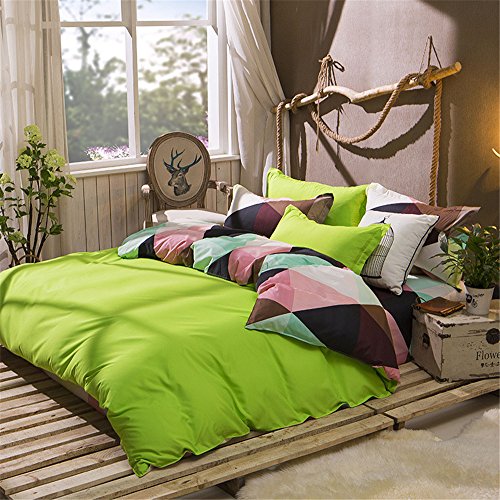 100% Premium Microfiber This Geometric Patterns Duvet Cover Set is made of 100% premium microfiber.Microfiber is a high-density polyester with extremely fine fibers that make it lightweight yet durable.These fibers give a soft,pleasant feel against the skin while remaining breathable and cool, while its intense density makes its completely resistant to wrinkling and fading,which always gives you a sweet sleep and accompanies you through four seasons.