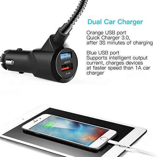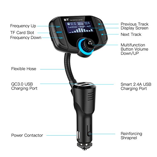 Product features: 1. 1.7 inch large LCD backlight display 2. Start the car, the screen will display the car batter voltage 3. CVC technology to control noise and storm then to create full-duplex sound quality 4. When the device is switched on, the phone can automatically connect to Bluetooth 5. Support the phone's A2DP function, the phone will play music directly when connecting 6. Support external TF card, can play MP3/ WMA format music files 7. Intelligent charging and high-pass fast charging program output, can be applied for car handheld equipment charging 8. Orange USB port supports QC3.0 PROTOCOL: DC3.5-6.5V/ 3A, 6.5-9V/ 2 A, 9-12 V/ 1.5 A; Blue USB port supports intelligent output current: 5 V/ 2.4 MA 9. Designed for plugged in the car cigarette lighter, not pick car models