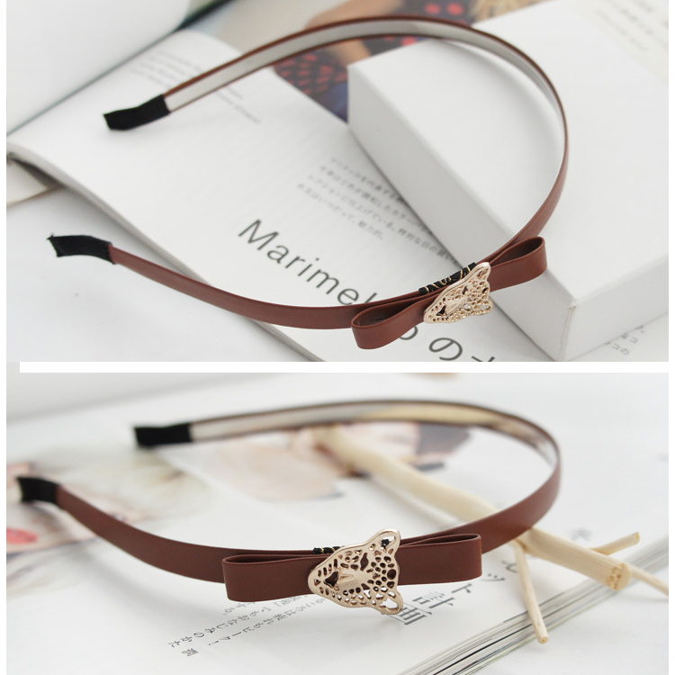 豹のシルエットモチーフが印象的なカチューシャ。上品なフェイクレザー生地とリボンにプラスしたデザインが個性的でエレガントな印象になります。