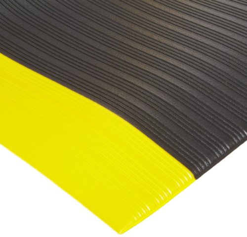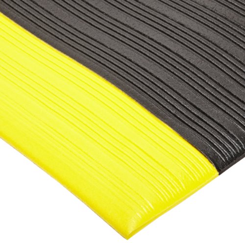 NoTrax 410 PVC Airug Safety/Anti-Fatigue Floor Mat, for Dry Areas, 3' Width x 5' Length x 3/8" Thickness, Black/Yellow
