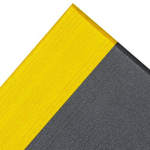 NoTrax 410 PVC Airug Safety/Anti-Fatigue Floor Mat, for Dry Areas, 27" Width x 3' Length x 3/8" Thickness, Black/Yellow