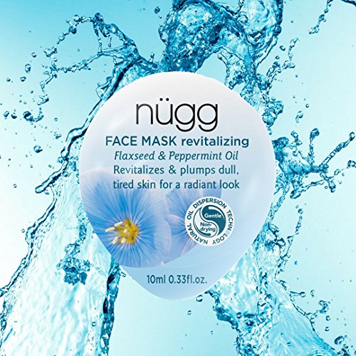 5 pack of nügg Revitalizing travel size face mask capsules suitable for all skin types that need a boost for a fresh and radiant complexion. Powerful yet gentle blend of Peppermint Oil and Flaxseed Oil revitalizes, refreshes and helps plumps the look of dull and tired skin for a radiant, energized look and feel. The single-use pods protect the face masks from oxidation, are easy to use, and travel friendly and perfect for on-the-go. nügg Revitalizing Face Masks have won the ALLURE Best of Beauty Award twice! Mfg. in the USA. Non-drying gel formula. How to use: Apply content of one pod onto skin, leave for 10 to 15 minutes and rinse off or remove with damp washcloth. Place in fridge before use for extra cooling sensation. Use this nügg face mask twice a week or as often as desired.Feature