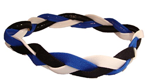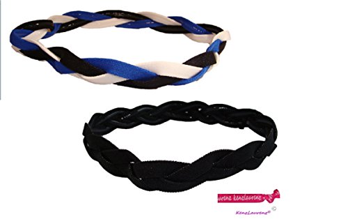 Braided Sports Headband (2 Pack) Black White Blue Non Slip Grip Elastic Stretch Mini Hair Bands Sport and Fashion Headbands for Teens Girls Women Softball Volleyball Set Basketball Soccer Teams Hair Accessories by Kenz Laurenz