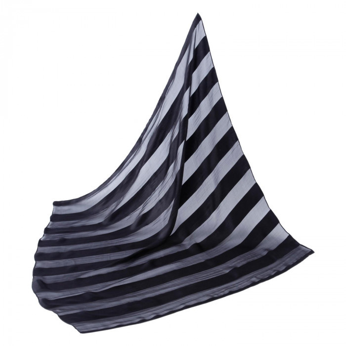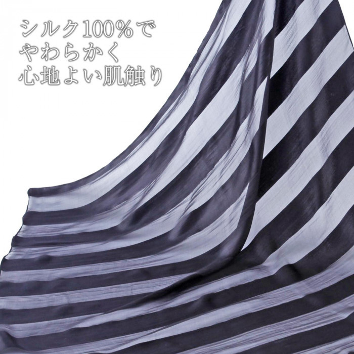 | シルク100%!雨や肌寒い日に重宝するスカーフです。約88×88cmとストールのようにサッと羽織れる大判サイズ。ひざかけとしてもご使用できます。慶弔時などあらたまった席でも失礼にならないシンプルなデザインで、一枚持っていると様々なシーンで活躍してくれます!程よいシースルー感がおしゃれなストライプ柄。絹100%/シルク100%/シルクスカーフ/黒/ブラック/レディース/エレガント/紫外線対策/日焼け防止/冠婚葬祭 |