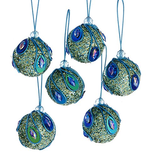 Kurt Adler 1 Set 6 Piece Peacock 2 Inch Ball Foam Ornaments