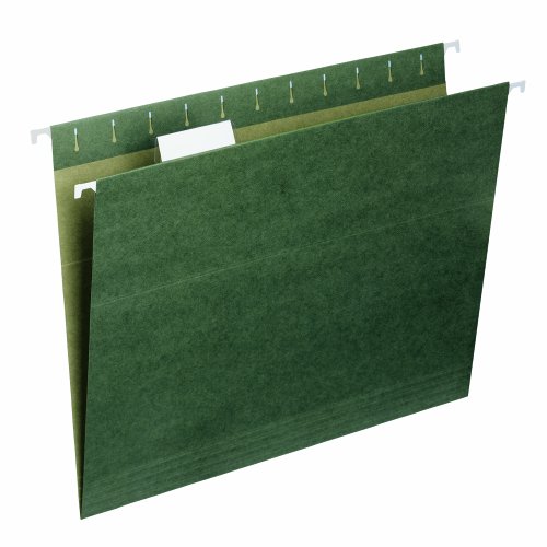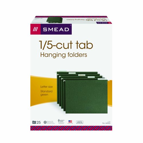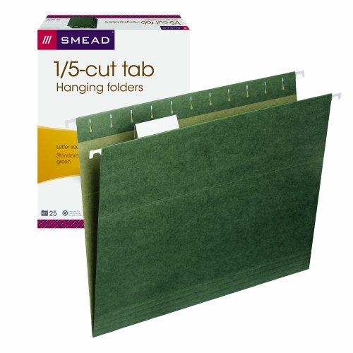 -. Title : Smead Hanging File Folder with Tab, 1/5-Cut Adjustable Tab, Standard Green, 25 per Box