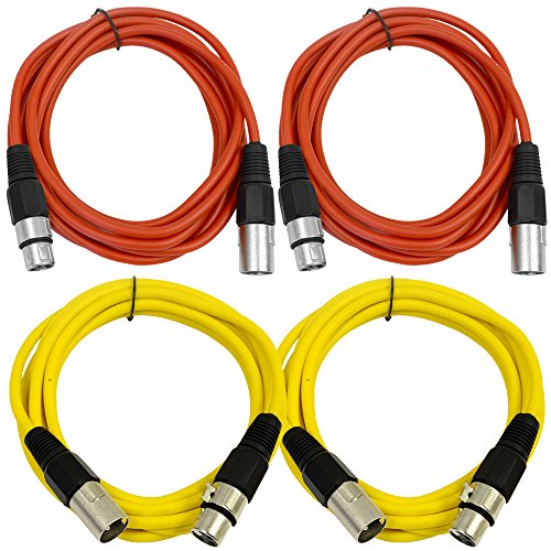 SEISMIC AUDIO - SAXLX-10 - 4 Pack of 10' XLR Male to XLR Female Patch Cables - Balanced - 10 Foot Patch Cord - Red and Yellow