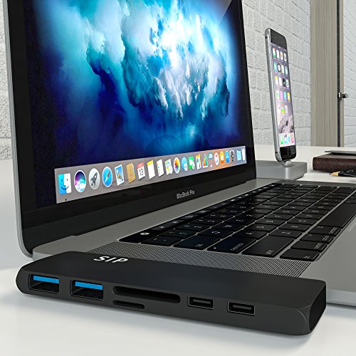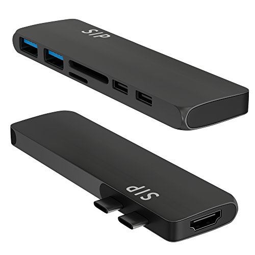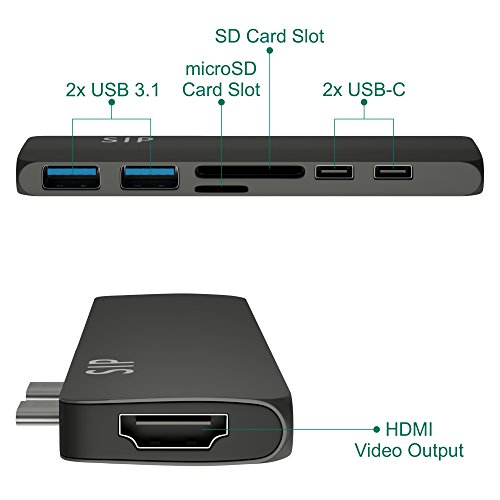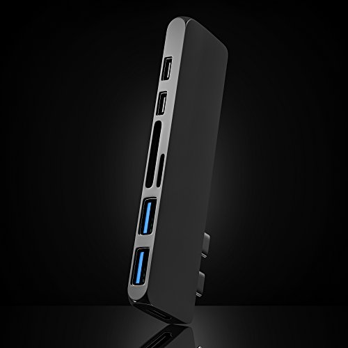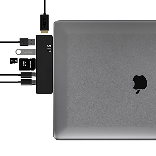 -. Feature : ✅ MACBOOK PRO DONGLE - unique HDMI port specially designed for Apple 2016 MacBook Pro, including 13''and 15'', WARM NOTE: CANNOT WORK WITH MACBOOK PRO CASE / ✅ USB C SPLITTER - Turns a single USB-C port into 7 ports - MACBOOK DOCK - (HDMI, thunderbolt USB-C with Power Delivery, 2 x USB 3.1, microSD, SD, audio jack). Great HDMI Apple adapter. / ✅ MICRO CARD SLOT - USB C CARD READER - Support your multitasking, improve efficiency. / ✅ STYLISH & STANDARDS - MacBook HDMI Adapter - is designed to be compact enough to match with your MacBook Pro wherever you go. / ✅ LATEST CHIP PROCESSING TECHNOLOGY - Thunderbolt to usb - up to 5k or 2x4k @ 60Hz video, up to 40Gb/s data speed; 1 x HDMI port - up to 1080P @60Hz, 4K @30Hz; 2 x USB 3.0 ports - 5Gb/s data speed; Type-C Port (C port 2)- up to 10Gb/s data speed. SD/Micro SD card reader - up to 104MB/s