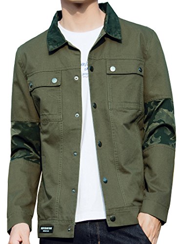 -. Title : Faston ジャケット メンズ 韓国風 長袖 無地 春 秋 カジュアル スリム 綿 コート 4色 JK20 (XXL, グリーン)