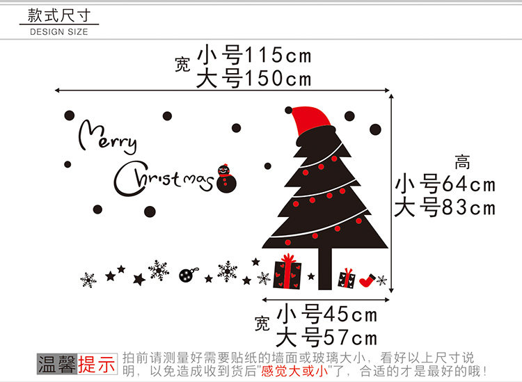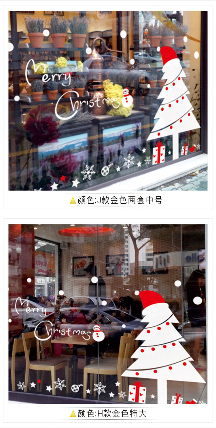 圣诞节装饰品橱窗玻璃静电贴纸老人圣诞树门贴商场酒店手机店画