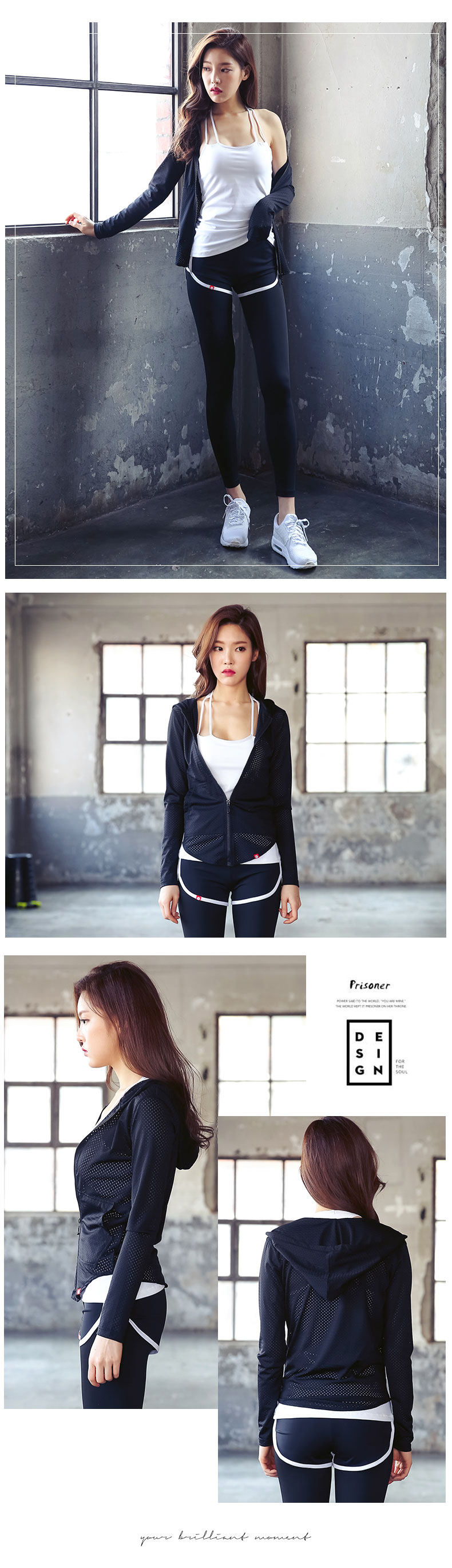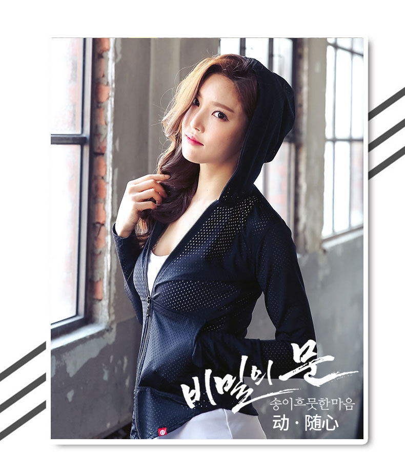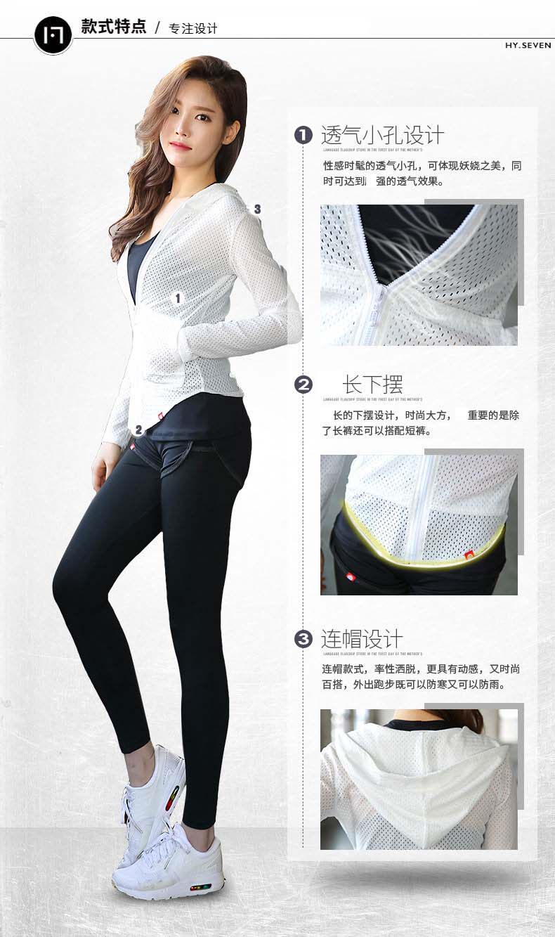 新款网眼瑜伽服健身服透气速干衣夏季跑步运动上衣拉链带帽外套女