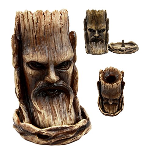 This is a conceptually genius figurine depicting the wisdom of the greenman tree man forest spirit. Light up an incense cone and see smoke exiting through the top of the tree through a hole, creating a mysterious forest atmosphere.