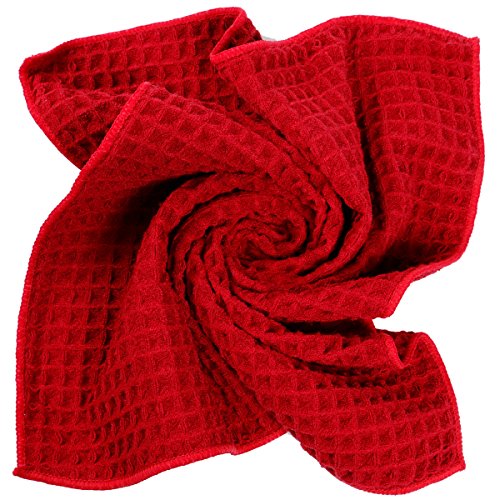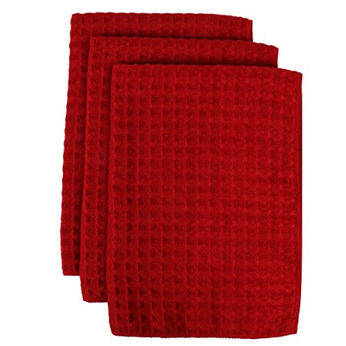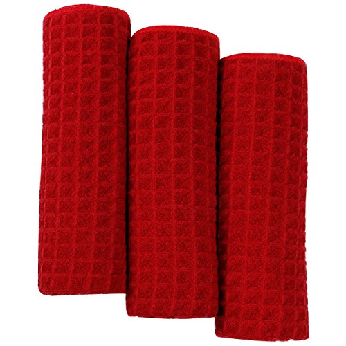 Lifaith Microfiber Thick Waffle Weave Kitchen Towels Machine Washable, Ultra Absorbant, Basic Everyday Dish Cloth, 3 Pack, 16 X 24-Inch Red