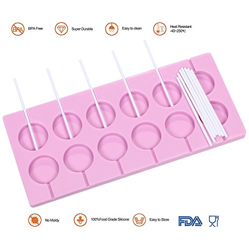 - Two chocolate molds in 1 pack, 12 holes round candy molds, with total 140 sucker sticks (100 long and 40 short)