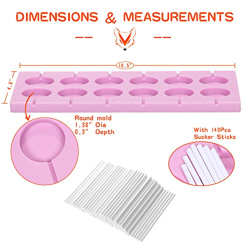 V-fox 2x12-Capacity Round Chocolate Hard Candy Silicone Lollipop Molds with 140 count Lollypop Sucker Sticks for Halloween Christmas Parties