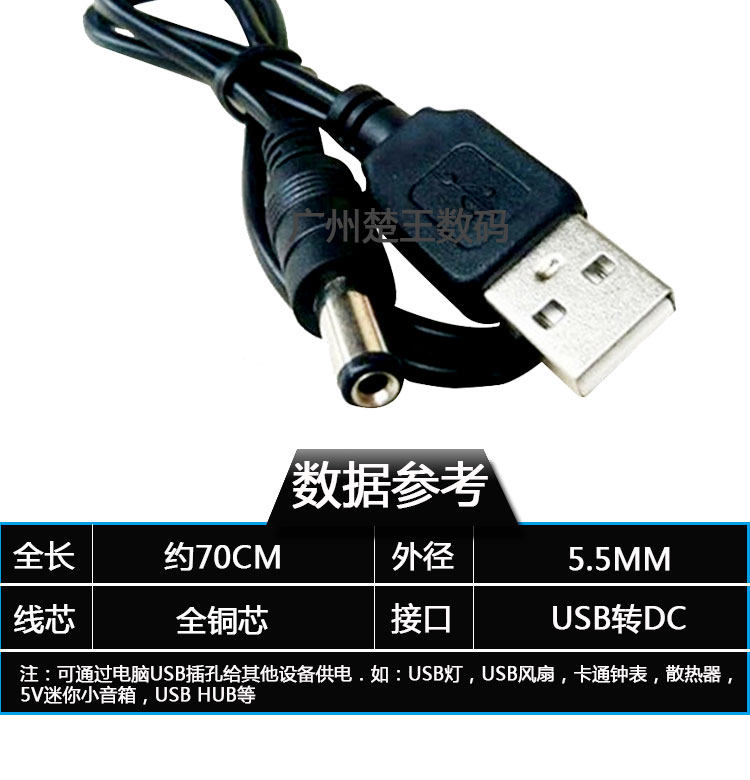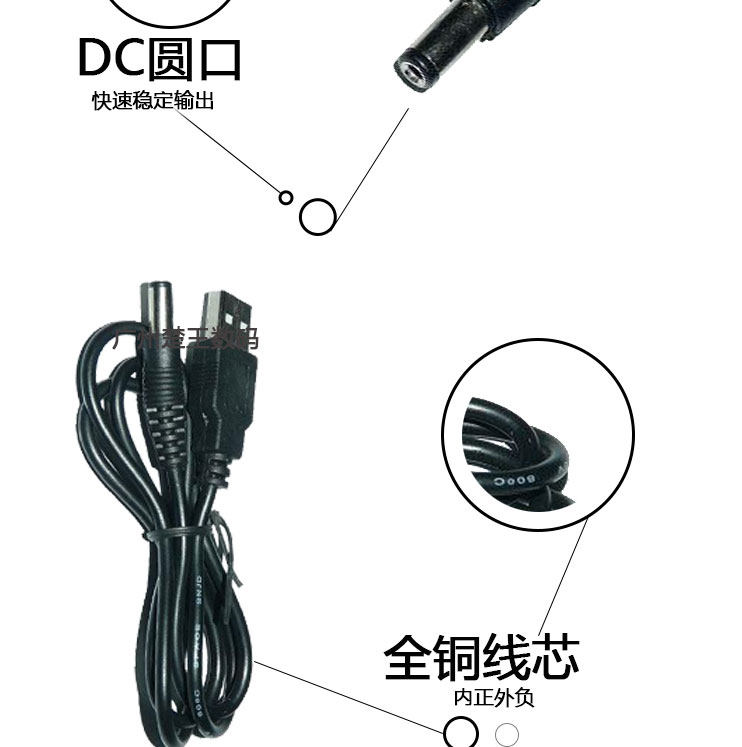 【接口】:USB转DC5.5*2.1MM.内正外负