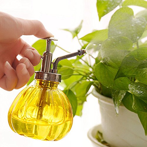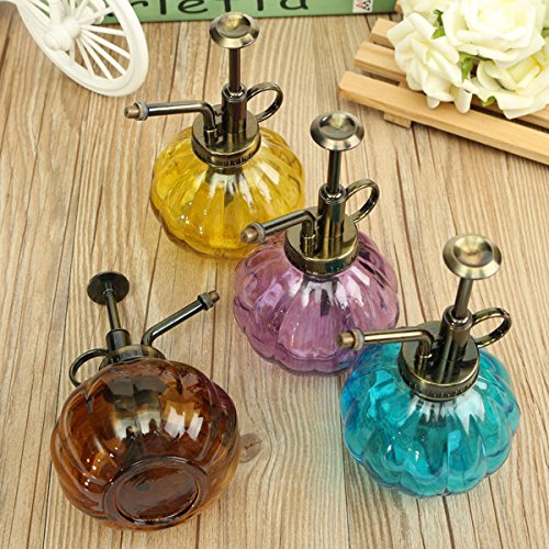 -. Feature : Ideal for watering plants, hanging baskets, greenhouse and home use. Specification: Material: PVC (nozzle) + glass (bottle) Color: purple, yellow, coffee, blue Capacity: 240ml Size: 15.5cm x 4.5cm / 6.1'' x 1.8'' (height*base diameter) / Feature: Easy to use, convenient to carry Good atomization, adjustable nozzle, can spray mist or straight line By adjusting the rotating brass nozzle, can control the size of droplets Loose nozzle can spray large water drops, tighten the nozzle can spray mist water Package Included: 1 X retro sP.R.Inkling can