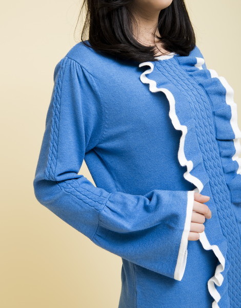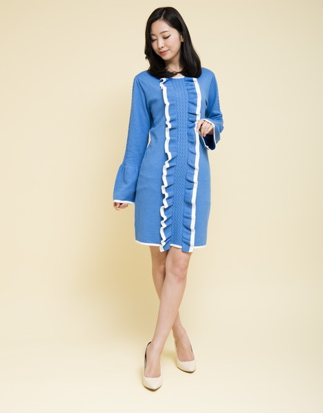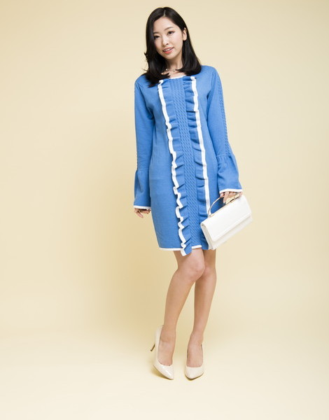 華やかなフリルがポイントになったニットワンピース。程よく身体に寄り添うラインで、レディムードを後押し。他にはない綺麗なカラーリングもGOOD◎