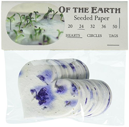 OF THE EARTH Purple Heart Shape Seed Embedded Blue Larkspur Handmade Paper, Large, Set of 48 Tags