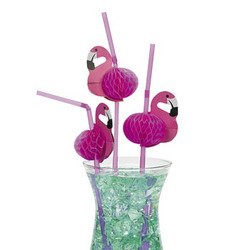 4 dozen (48)tissue flamingo straws. Each 2 1/4' flamingo is on a 10' bendable straw.. 4 dozen tissue flamingo straws. These straws add fun and whimsy to any drink. . These straws are made from food safe plastic, and the paper decorations are made of food safe material.