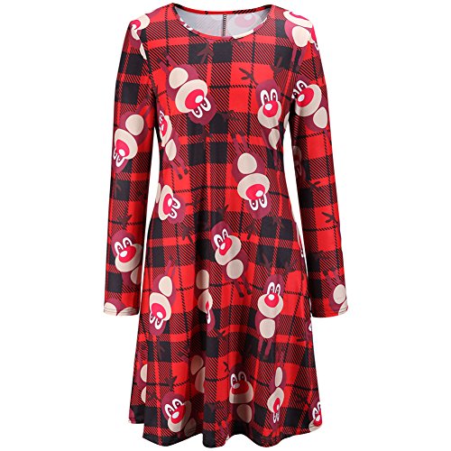 -. Title : Women's Christmas t Pize Size Long Sleeve Red Reindeer Swing Dress (XL, Reindeer-Red)
