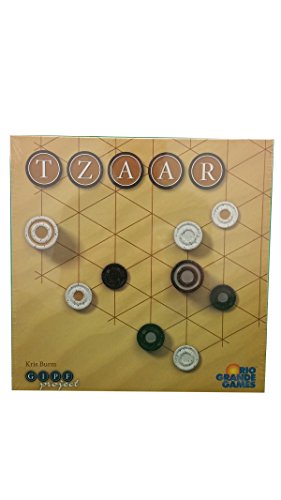 TZAAR is a game about making choices. Both players have 30 pieces, divided in three types: 6 Tzaars, 9 Tzarras and 15 Totts. The 3 types of pieces form a trinity: they cannot exist without each other. The aim is either to make the opponent run out of one of the three types of pieces or to put him in a position in which he cannot capture anymore. The tricky question the players will have to ask themselves on each of their turns is: "Shall I make myself stronger or my opponent weaker?" Meaning: will you capture an opponent's piece and make him weaker, or will you jump on top of one of your own pieces and make yourself stronger? If you choose to jump on top of your own pieces too often, you will probably leave your opponent with too many pieces on the board. On the other hand, if you capture too often, you may end up with pieces that are not strong enough at the end of the game. What to do? Up to you to decide!Feature