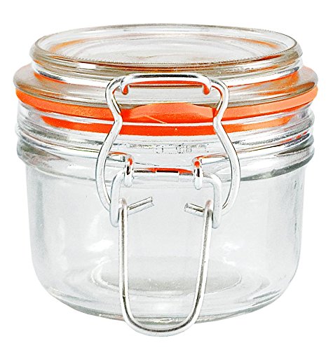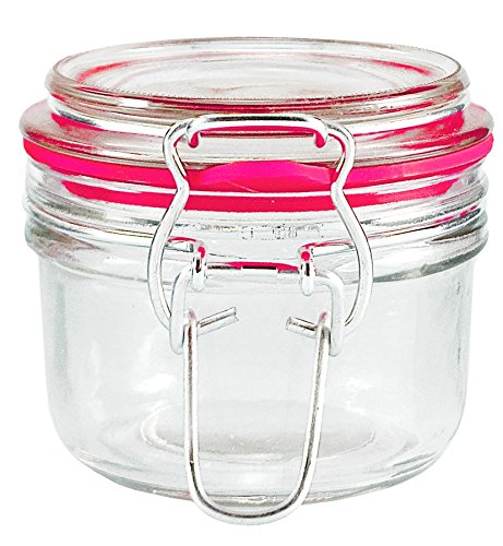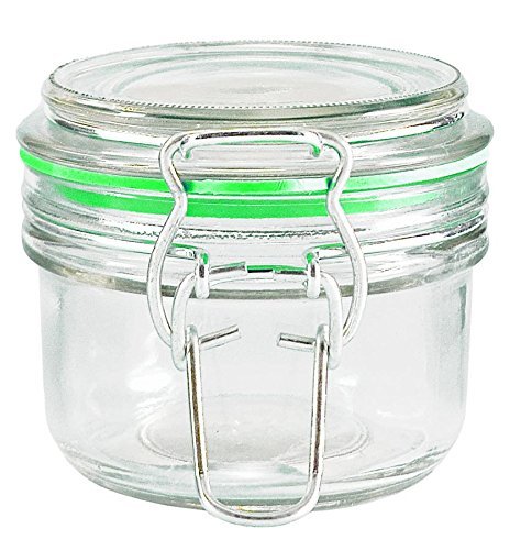5.4oz. Heremes Glass Jar w/ Clamp-Top Lid - Assorted Colored Gaskets 2.75” x 2.75”