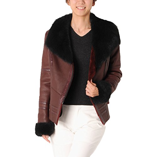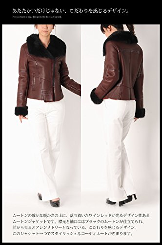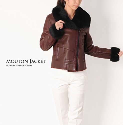 -. Title : ムートン ジャケット レディース ダブルフェイス ライダース バイカラー 着丈54cm レッド : M ワインレッド