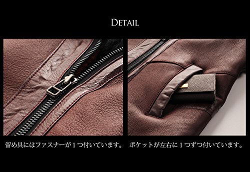-. Feature : 【素材】羊革 【原産国】中国 【裏地】ダブルフェイス 【留め具】ファスナー×1 【ポケット】左右1ケ所づつ 【洗濯表示】・アイロンがけはできない・水洗いはできない・塩素系漂白剤による漂白はできない・ドライクリーニングはできない / ※この商品は1点限りの商品ですので、画像掲載の商品をお届けします。 / (No. 1100-91 r ) / ●デザイン ムートンの確かな暖かさの上に、落ち着いたワインレッドが光るデザイン性あるムートンジャケットです。襟元と袖口にはブラックのムートンが仕立てられ、前から見るとアシンメトリーとなっている、こだわりを感じるデザイン。●素材 ムートン(羊革)をダブルフェイス(一枚革)で使用しました。ダブルフェイスの魅力は、なんといてもその暖かさ。レザー面と毛皮面が一枚の革でできており、レザー面が風を通さないため、毛皮面で暖められた空気を逃すことなく保温効果が保たれるつくりとなっています。●スタイルこのジャケット一つでスタイリッシュなコーディネートがきまります。 ≪単位cm≫【M】 着丈54/胸周り96/肩幅42/袖丈65/アームホール52 【重量】約1120g