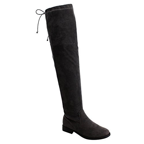 Binding : Apparel Product Description This over knee high boots radiate with chic and classic style for simlp but timeless appeal. Featuring soft faux suede material, round toeshape, pull on style, drawstring design and low heels. The boots make for a perfect match for your favorite dress. 0